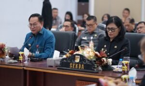 MINAHASA- XPOST.CO.ID Penjabat Bupati Minahasa, Dr. Noudy R. P. Tendean, SIP, MSi, didampingi Sekretaris Daerah Dr. Lynda D. Watania, MM, MSi, memimpin Rapat Forum Koordinasi Pimpinan Daerah (Forkopimda) Kabupaten Minahasa. Rapat ini berlangsung di Ruang Sidang Kantor Bupati Minahasa pada Kamis (6/2/25) dan dihadiri oleh berbagai unsur pimpinan daerah.