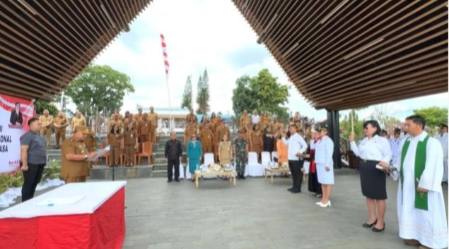 Kegiatan berlangsung di Lapangan Sam Ratulangi Tondano, Senin (27/10/2025), yang diawali dengan pembacaan Surat Keputusan Bupati Minahasa oleh Kepala BKPSDM Drs. Moudy Pangerapan MAP.