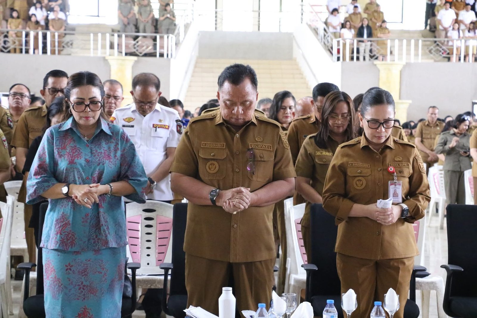 “Kita harus menjadi ASN yang bekerja dengan hati, berpikir dengan nurani, dan bertindak dengan iman. Mari kita bersyukur atas kasih Tuhan yang senantiasa menyertai langkah kita, dan memohon agar Tuhan senantiasa memberkati Minahasa, tanah yang kita cintai bersama,” tutup Bupati.
