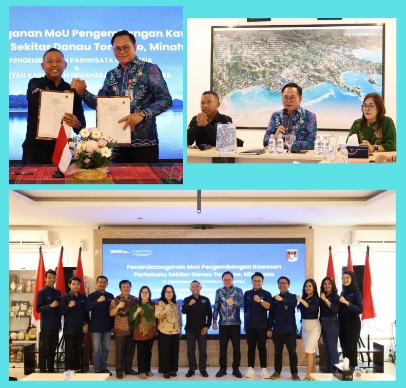 MINAHAS – Xpost.co.idPenjabat Bupati Minahasa Dr. Noudy R. P. Tendean, S.IP, M.SI Melakukan Penandatangan MOU Pengembangan Kawasan Pariwisata Sekitar Danau Tondano antara Pemkab Minahasa dengan Injourney Tourism Development Cooperation (ITDC), bertempat di ITDC Office Mandalika Nusa Tenggara Barat.