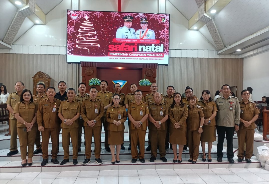 MINAHASA ,XPOST.CO.IDPemerintah Kabupaten (Pemkab) Minahasa melanjutkan Safari Natal di Kecamatan Kawangkoan Raya, Langowan Raya, Tompaso Raya, dan Sonder. Kegiatan yang dipusatkan di Gereja KGPM Sentrum Kawangkoan pada Selasa (2/12) pagi ini, dipimpin langsung oleh Wakil Bupati Vanda Sarundajang, SS.